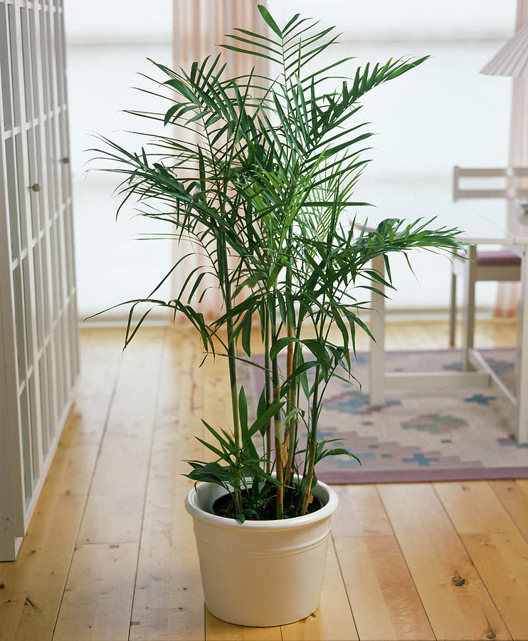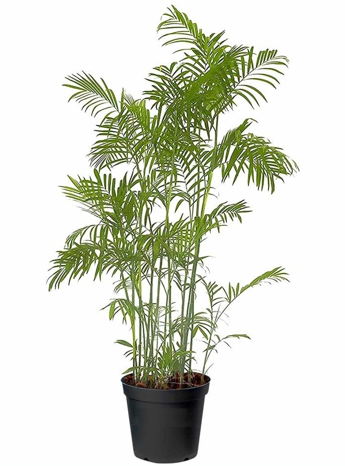 It grows to about 7 feet. Each stem is long and slender with “nodes” very similar in appearance to Bamboo. Although plants are commercially clumped together to form shrub-like specimens, this palm naturally spreads by suckers or offshoots also similar to Bamboo. The stems are tall and have about 10-15 fronds each with about 12 dark green pinnate leaflets. As the old fronds die, these should be trimmed off and the leaf bases or sheath allowed to dry out. Later these should be removed as this promotes good plant hygiene and exposes the attractive light green bamboo stem