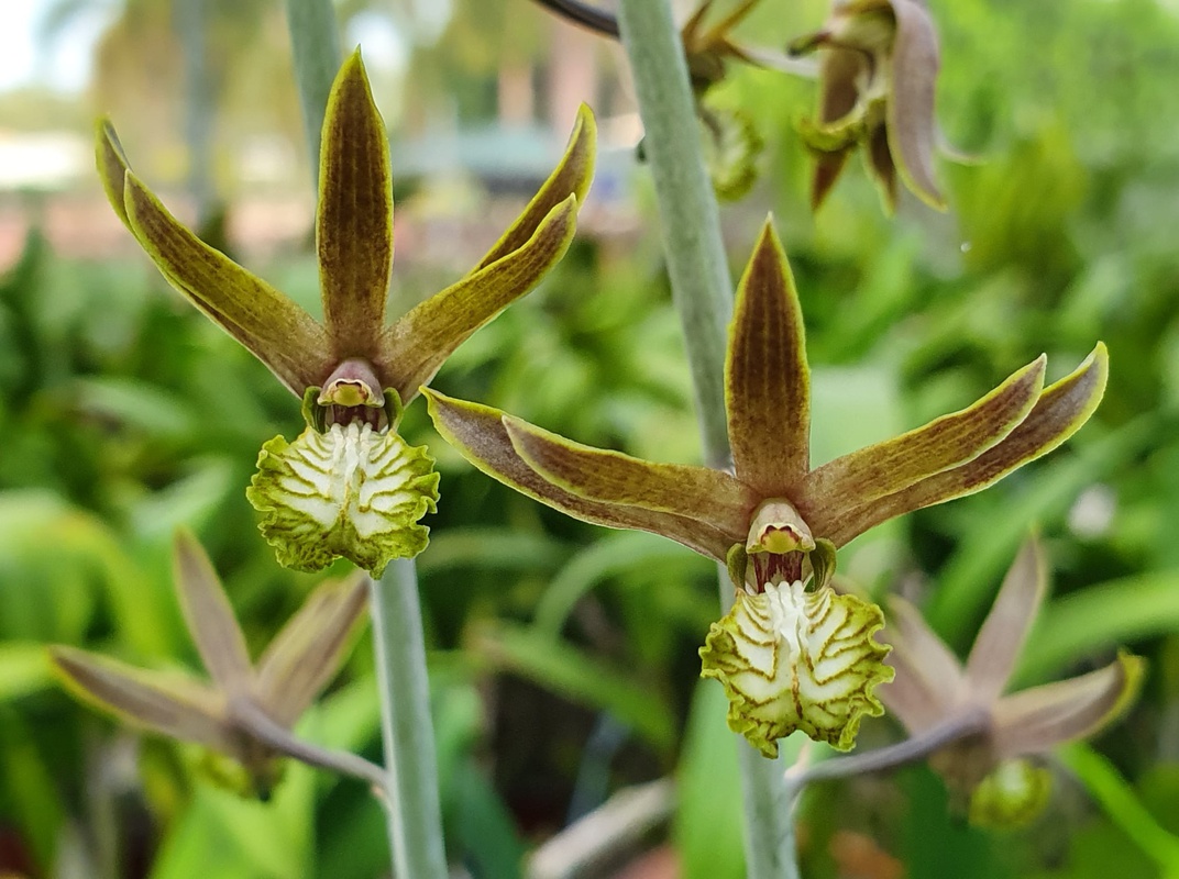Eulophia andamanensis is an orchid found to occur among the Andaman and Nicobar group of Islands (off the east coast of India and also in the north-western tip of Langkawi island in Malaysia.The occurrence of this ground orchid in Andaman Islands is restricted to some isolated pockets of certain islands and rare. Living collections of this taxon from the Andaman Islands is under ex situ conservation outside the islands at the Field Gene Bank of Jawaharlal Nehru Tropical Botanic Garden and Research Institute, Trivandrum, India. It is a pre-tsunami accession