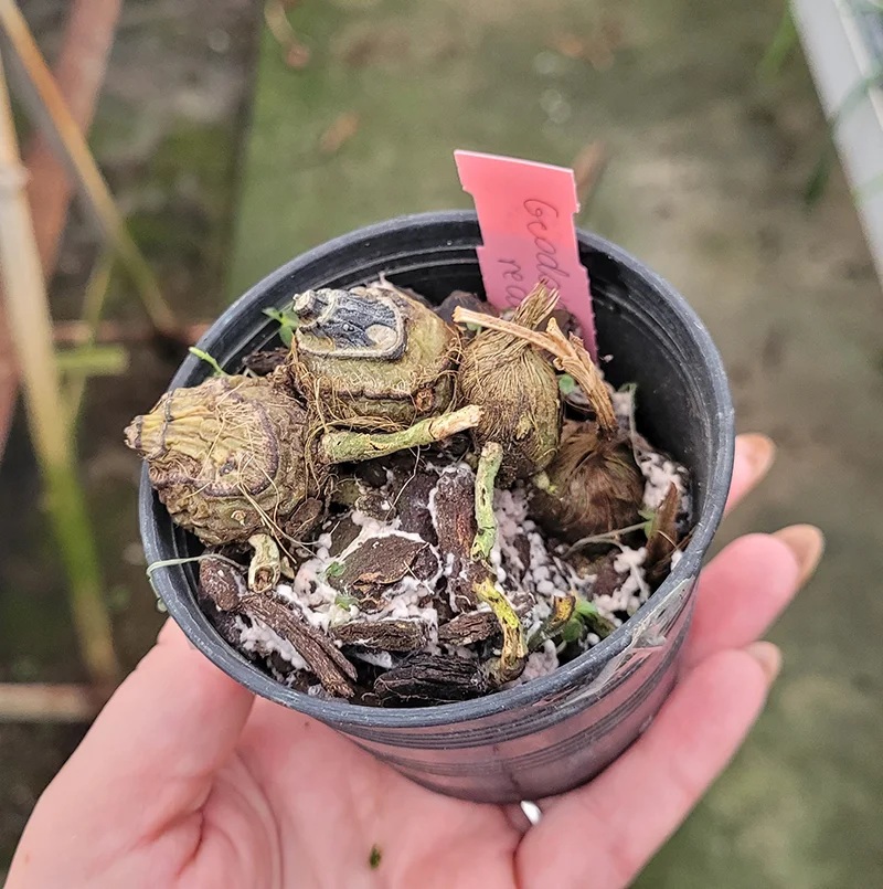 ریزوم یا پیاز درشت این ارکیده کمیاب در بانک بذر جنوب موجود است.