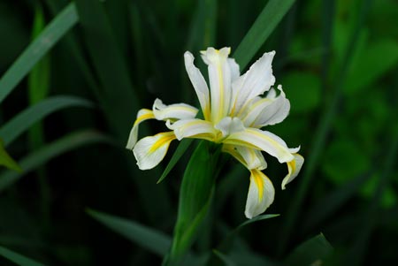 Iris halophila is a species in the genus Iris, it is also in the subgenus of Limniris and in series Spuriae. It is a rhizomatous perennial plant, with yellow, white or violet flowers. It is cultivated as an ornamental plant in temperate regions. It comes from a wide range from eastern Europe to China in Asia. It was known for a long while as a subspecies of Iris spuria, before being treated as a separate species in its own right.