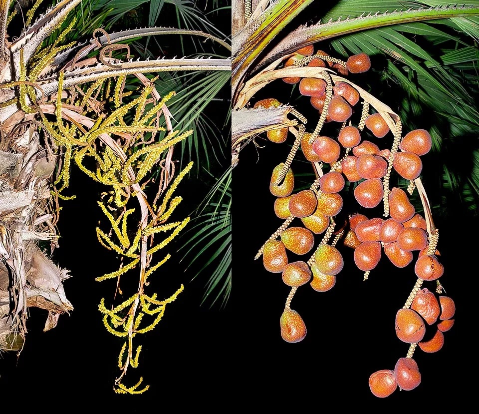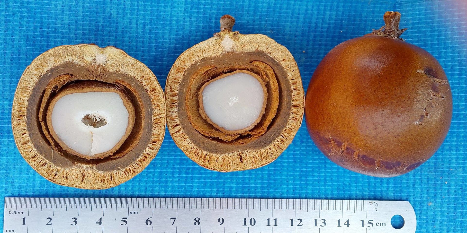 میوه ها درشت و گرد هستند و یک بذر درشت و گرد حتی بزرگتر از یک گردو داخل هر میوه است